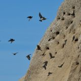 Shallow rapid wingbeats. Nests in colonies in steep sandy river banks, manmade excavations etc.
