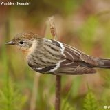 Winter and Immature: resemble Blackpoll and Pine Warblers but brighter green above. Unstreaked breast. Two white wing bars. Dark legs. Usually have some buff or chestnut on sides. Buffy or white undertail coverts.