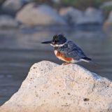 33 cm (13") Common throughout North America. The only kingfisher north of Texas and Arizona. Rivers, streams, lakeshores, coastal bays.