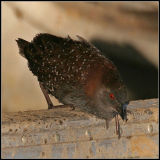 15 cm (6") Uncommon and local. Marshes, swamps, wet meadows. Smallest rail. Very secretive.
