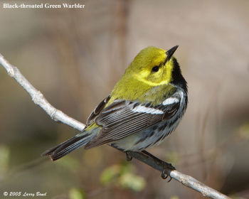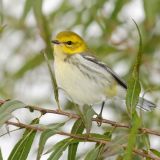 Female and Immature: olive-green upperparts. Yellow face. Some black on throat and sides otherwise white underparts. Two white wing bars.