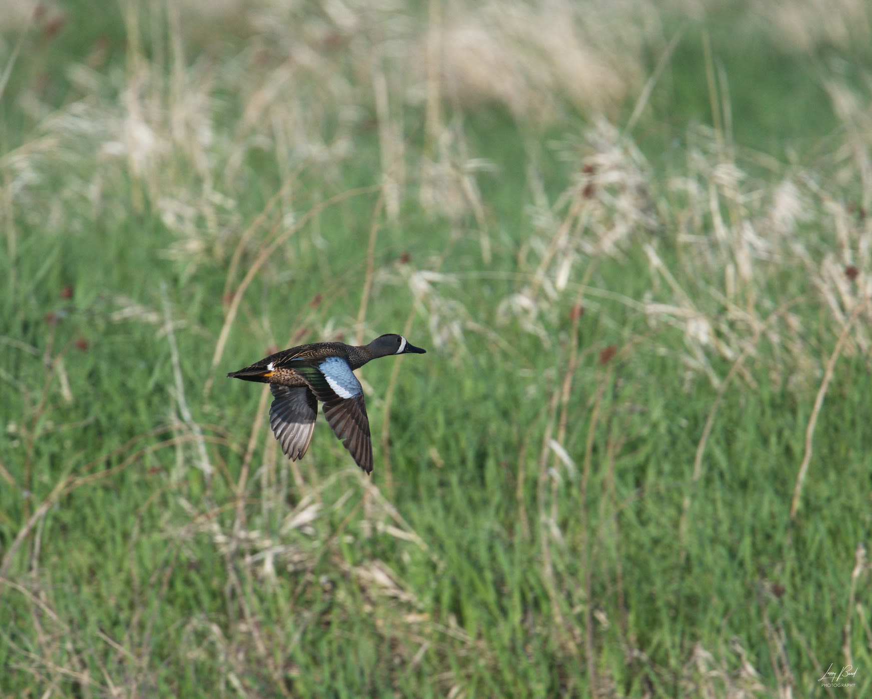 In flight: small, fast flying in compact and agile flocks; light blue patch on forewing, green speculum.