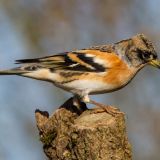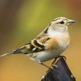 Female or Fall Male: buffy or brownish head, mottled brown crown, and barred or mottled back. Tawny-orange shoulder patch. Spotted sides.