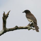 Large sooty brown jay with a long and wide tail. Pale belly. Black bill; immature's have yellow bills.