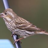 Female: sparrow-like. Resembles female Purple Finch but it has whiter underparts with sharper streaking and streaked undertail coverts. Told from female House Finch by distinctive ear patch and eyebrow stripe.