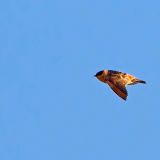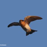 Square tail, buffy rump. Resembles Cliff Swallow but the facial pattern is reversed. It has a lighter buffy throat and cheeks and a dark chestnut forehead.