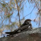 23-25 cm (9-10") Common and widespread. Open woodlands, urban areas. Sits lengthwise on limbs. Often seen in evenings catching flying insects with swift and fluttery flight. Nests on flat-topped buildings. Active day and night.