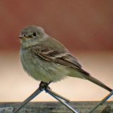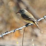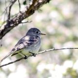 Narrow white eye ring is inconspicuous on a gray face. Gray head, back, and underparts. Long tail is narrowly edged in white. When perched it drops its tail downward first like a phoebe.