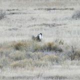 48 cm (19") Common. Sagebrush in western North America. Restricted in range to southwestern Colorado and southeastern Utah, with the largest population residing in the Gunnison Basin region in Colorado. Large size, black belly and long pointed tail are unmistakable. Almost identical to the closely related Greater Sage-Grouse in appearance but about a third smaller in size, with much thicker plumes behind the head and a less elaborate courtship dance.