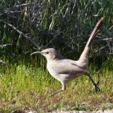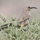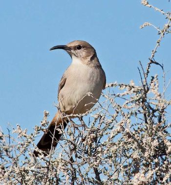 Pale grayish-brown upperparts. Long dark tail. Dark eyes. Plain light gray breast.