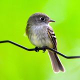 Olive or grayish upperparts. Whitish throat. Grayish breast. Pale yellow belly and under tail. Narrow but distinct eye ring. Distinct wing bars. Grayer above and lighter below than other empidonax species.
