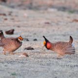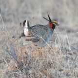 Similar to larger Greater Prairie-chicken but has finer barring below and males have a different color neck sack.