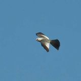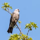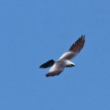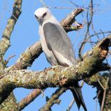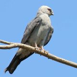 Falcon-like hawk; long pointed wings. Pale head with red eyes. Dark gray above, pale gray beneath. Long black unbarred tail.