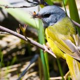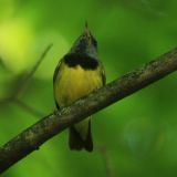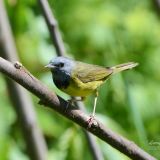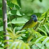 Secretive and skulky hopping through underbrush. Similar Connecticut and MacGillivray's Warblers have distinctive eye rings.