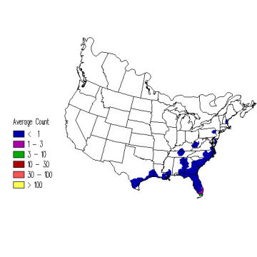 12 cm (5") Common in eastern United States; casual to southern Ontario. Open deciduous saplings, wood margins, overgrown fields, mangrove swamps.