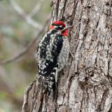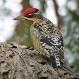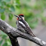 Very similar to Yellow-bellied Sapsucker (ranges overlap in Canada). Red forehead and back of head. Male has a red chin and throat area; female has a white chin and some red on throat.