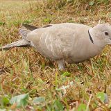 All white or beige dove that usually has a black neck ring-line on the collar. A lot of doubt and confusion exists in exact speciation of this domestic dove. It may be a variation of the Eurasian Collared Dove.