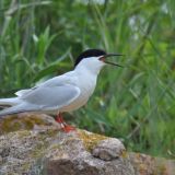 39 cm (16") Uncommon. Atlantic coast. Pale gray mantle. Deeply forked tail. Adults have bright reddish orange legs, black tipped bill with a red base, may have a pinkish underbody.
