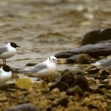 34 cm (14") Rare. Arctic bird. Accidental south. Adult is pink below. Thin neck collar in spring and summer, partial or absent in fall and winter. Only gull with a wedge-shaped tail.