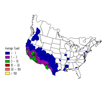 19 cm (7") Fairly common. Western North America. Dry open areas, canyons, ranches.
