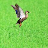 56 cm (22") Rare. Asian species that may visits Aleutians and Kodiak Island. Similar to American Black Duck and female Mallard but it has a dark bill with a distinctive pale tip. The form found in North America does not have the red spots on the base of its bill for which the species was named.