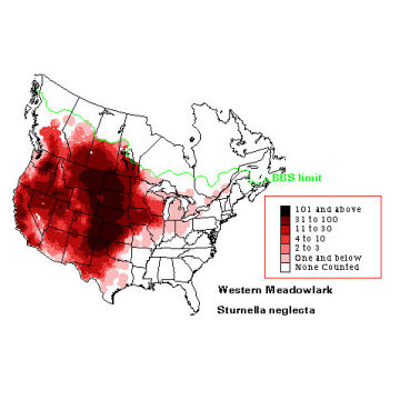 23 cm (9") Common. Western North America. State bird for Kansas, Montana, Nebraska, North Dakota, Oregon and Wyoming. Grasslands, fields, meadows.