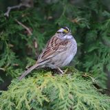 17 cm (7") Common. Breeds in Canada and northeastern United Stores; winters southeastern Canada to southern United States. Dense undergrowth, brush piles, gardens, frequents feeders.