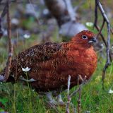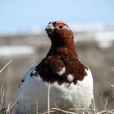 Summer: more mottled reddish than Rock Ptarmigan. Plumage is patchy white during spring and fall molts.