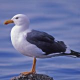 69 cm (27") Rare. Mexican bird that breeds in Gulf of California and wanders north to Salton Sea in summer. Similar to Western Gull but it has yellow feet. Western has pink feet.