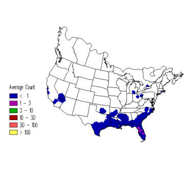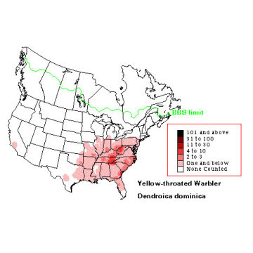 14 cm (5-6") Fairly common in eastern United States. Casual into eastern Canada. Usually high in oak, pine, sycamore or cyprus trees.