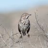 Sage Thrashers are pale grey-brown on the upperparts and white on the underparts with dark streaks. They have a slim straight relatively short bill, yellow eyes and a long tail, although not as long as that of other thrashers.